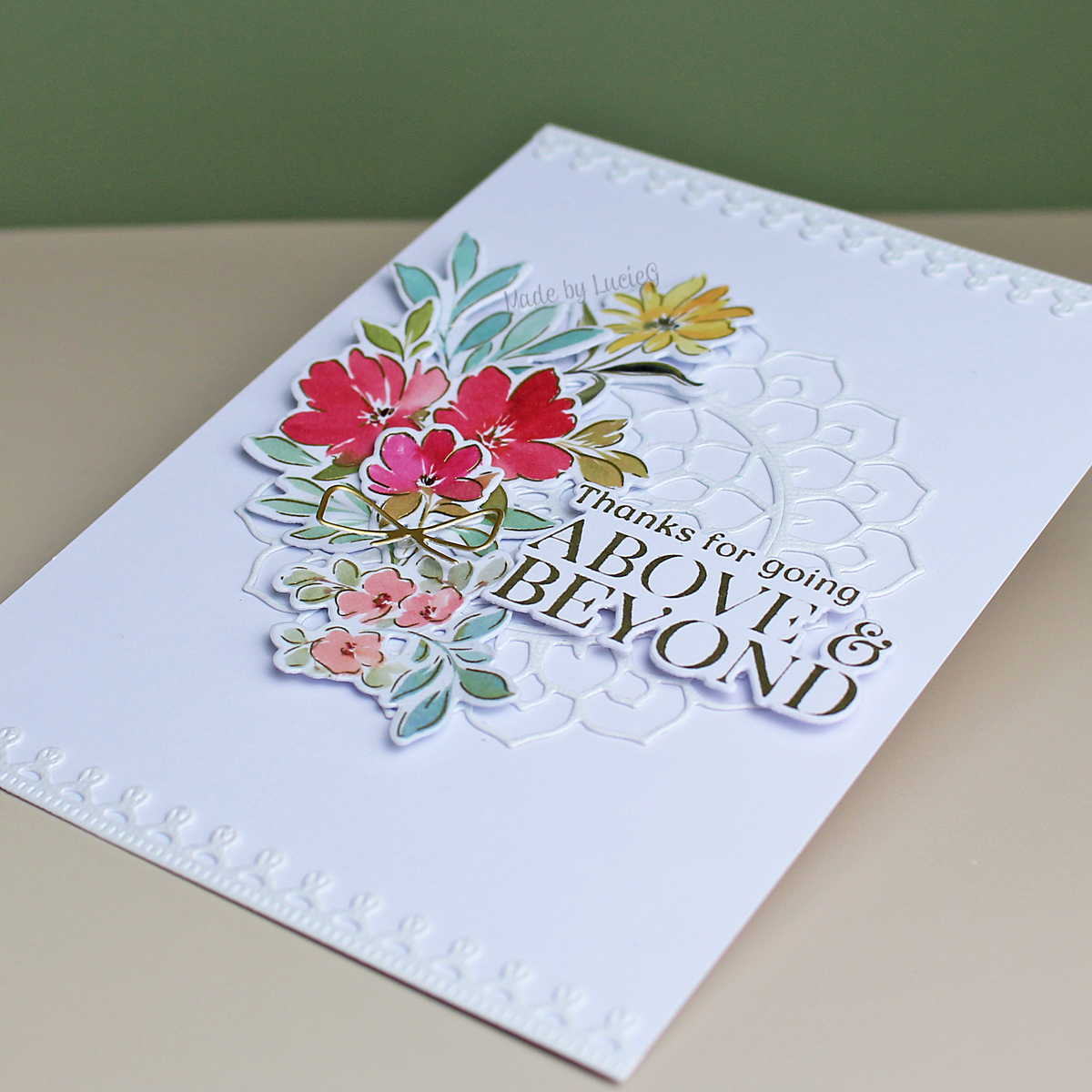 Next up is a card using the Pinkfresh Studio Flowers for the Soul washi images. I added the Birch Press Design Calen die to my card base and some trim from the Heritage Lace die set. The sentiment is from the Simple Joys set.