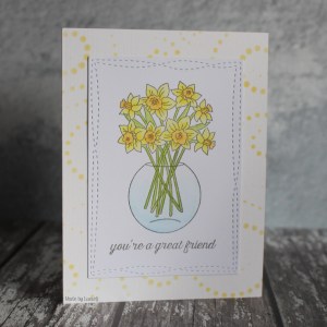 I’m a little late with this, but here is what I coloured for Day 22 of The Daily Marker 30 Day Challenge. I coloured an image from Clearly Besotted using my Twinkling H2Os and then used a stencil to add a little bit of interest to the base card. The sentiment is another Hero Arts stamp.