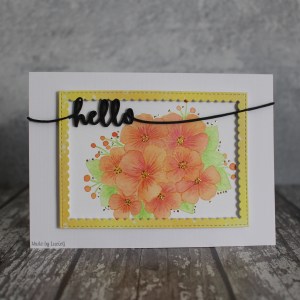 I’ve been practising my no-lines colouring today. I stamped the gorgeous floral bouquet image from Avery Elle in Antique Linen distress ink and then used my Twinkling H2Os to colour the image.