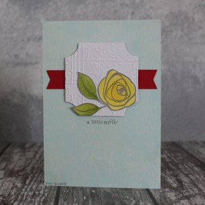 I coloured the image using my Twinkling H2Os and added it to a die cut – which I had embossed using one of my favourite Taylored Expressions embossing folders.