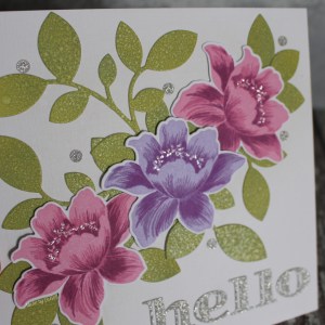 For today’s card, I stamped some gorgeous blooms from Altenew’s Garden Treasure set in various shades of pink and purple ink.