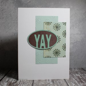 After cutting out the ‘yay’, I coated it with sparkle embossing powder – this card really sparkles in real life – will add a close up later!