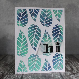 I used a fabulous background die from Altenew and inlaid the pieces that I’d cut from my coloured background into a white die cut panel. To finish it off, I added a small piece of vellum and a greeting cut using some of the Altenew inline alpha set.