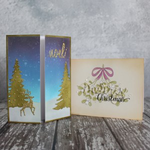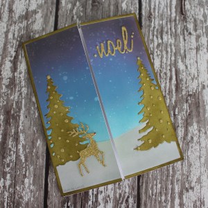First up is my take on Jennifer McGuire’s background die gatefold card. Rather than use a detailed cutting plate, I decided to make a scene using dies from memory Box, Taylored Expressions and Tim Holtz/Sizzix. I guess it ended up being a hybrid of Jennifer and Nicole Spohr’s card (100% die cutting!).