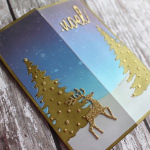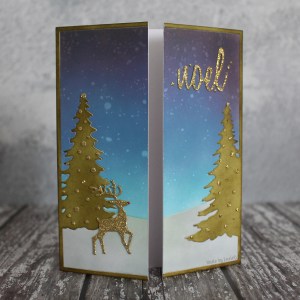 First up is my take on Jennifer McGuire’s background die gatefold card. Rather than use a detailed cutting plate, I decided to make a scene using dies from memory Box, Taylored Expressions and Tim Holtz/Sizzix. I guess it ended up being a hybrid of Jennifer and Nicole Spohr’s card (100% die cutting!).