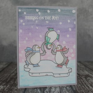 Anyway, I masked some Avery Elle penguins to create the main image (they are so cute, aren’t they) and embossed a sentiment from the same set to finish it off.