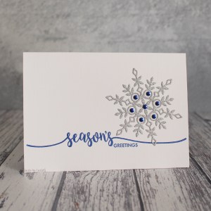 Here’s one of the quicker Christmas cards I made to send out this year. I made a few of this design with an Avery Elle stamp and various snowflake dies. The one in this card is from Simon Says Stamp.