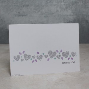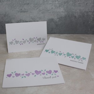 I didn’t have much time to craft today, but I did manage to make these three cute inlaid die cut cards using the fabulous Simon Says Stamp Cupids Heart Boarder die.