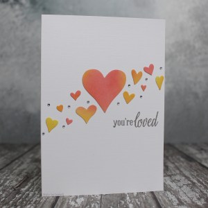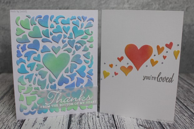 These are both sensational, Lucie! You did Laura Fadora proud with your all-over gorgeous coloring! I can’t believe you put foam on every little heart, but I agree it is hugely impactful and worth it! And your sweet CASlicious card letting someone know they are loved just melts my heart! Awesome warm sunset-y colors!! Thank you so much for playing along in Twofer Card Challenge #2!! Hugs, Darnell