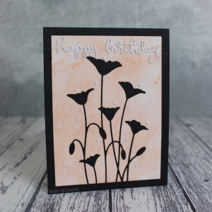 I cut black cardstock using dies from Memory Box and My Favorite Things and cut a Simon Says Stamp sentiment from white glitter card.