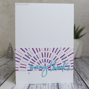 After settling on a combo I liked best, I trimmed the panel down and I added an Essentials by Ellen sentiment die cut that I had cut from a background blended with Tumbled Glass distress oxide ink and then embossed with clear powder. I wasn’t too sure about the blue against the background as it’s something I wouldn’t normally put with purples, but I liked the pops of blue/light aqua in the mood board photos and I think it works! What do you think?