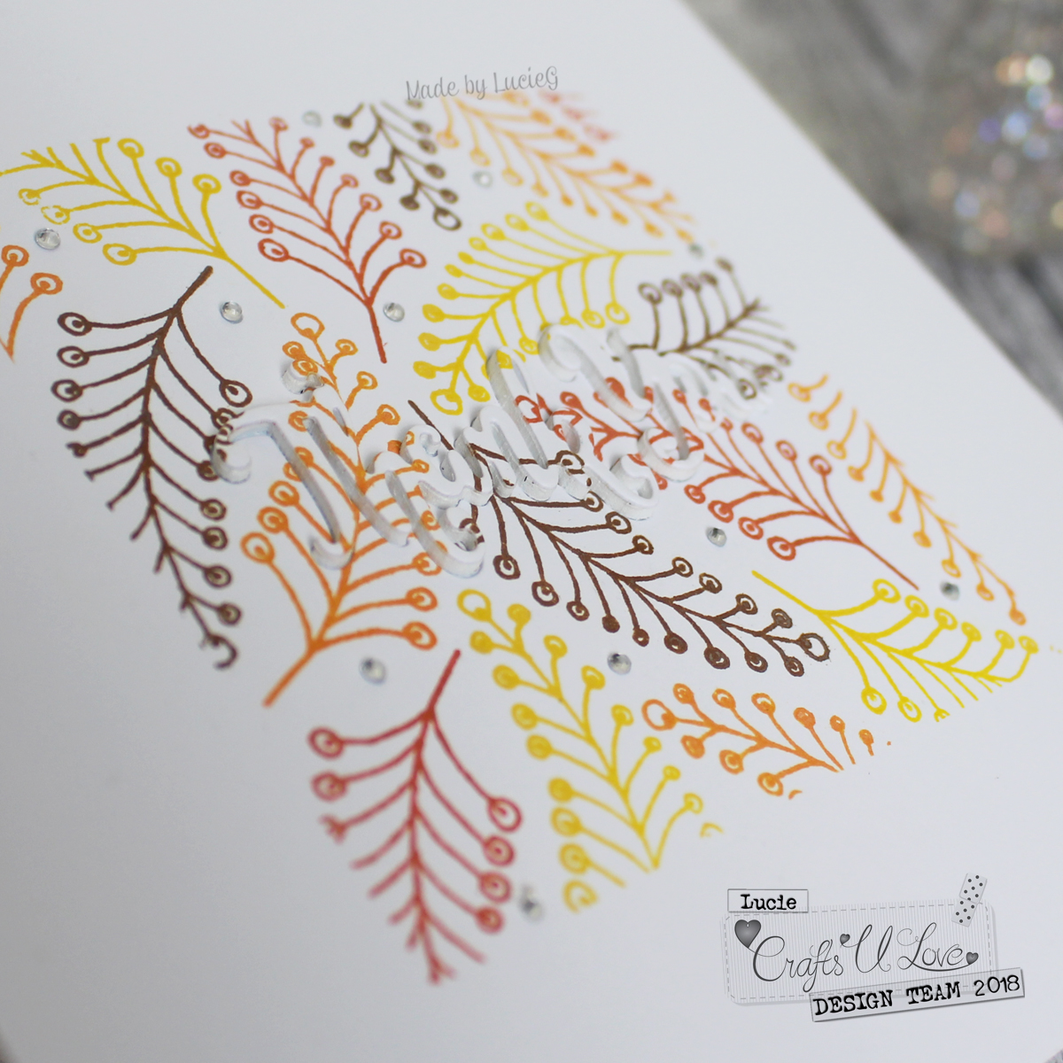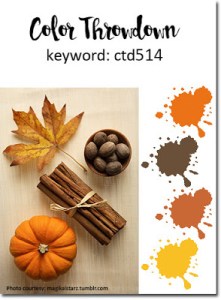I decided to make a CAS ‘hidden sentiment’ card using just one stamp from this set. This week’s Color Throwdown challenge has a fabulous colour combo (orange, brown, rust and yellow) which I felt would be perfect for an Autumn Thank You card.