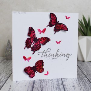 Today my AAA Cards teammates have joined with STAMPlorations to celebrate Melissa’s artistic and creative talents. Melissa’s favourite colour was red and she loved butterflies and we’d like to invite you to join us in celebrating her life by creating a butterfly card in her memory.