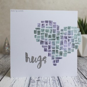 I was originally planning to cut part of the stencilled heart off to create my CAS card (the heart is really quite large!), but I couldn’t quite bring myself to do so! Instead, I cut around it so that part of the image hangs off the edge, preserving the beautiful heart!