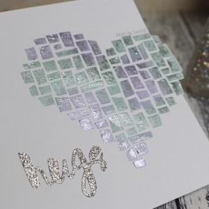 What a lovely tile stencil and your heart looks so lovely with the glitter paste! So pretty in the purple/green colors too – a fun design, cutting around the edge of the heart! thanks for joining us in the first CAS Stencil challenge!