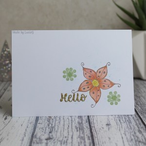 I decided to move away from hearts and instead used a beautiful wood-mounted flower stamp from Magenta as my focal point, which I coloured for my Day 16 Colouring for the Daily Marker 30 Day Challenge. I played around with different ideas (leaves, smaller flowers) for the other two images until I came across my fun Hero Arts Quattros set – I liked the contrast between the images and decided on a stamp from that set instead!
