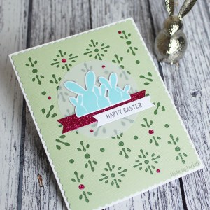 I decided to create another Easter card using older stamps from Simon Says Stamp and the current palette for the Color Throwdown challenge (mint, aqua, dark pink and green).