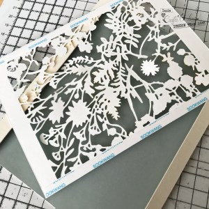 As this die is incredibly intricate, I used a metal shim when I ran this through my cutting machine. . You can see that this background die doesn’t create a frame, so you can easily create a bigger die cut panel if you want one.