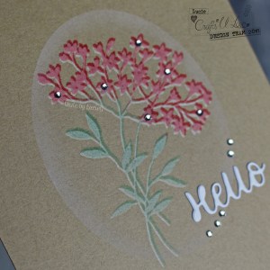 For the kraft card, I then simply cut a sentiment from the Karen Burniston Words Set 1 – Greetings dies set from white card and adhered it to my card base before adding a few gems* to finish off the card.