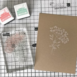 For this technique, you should offset this stamped image a little so that the white ink is completely exposed in some places and completely covered by the dye ink in other places. If you have a stamp positioner you might want to use it for this step to improve ink coverage.