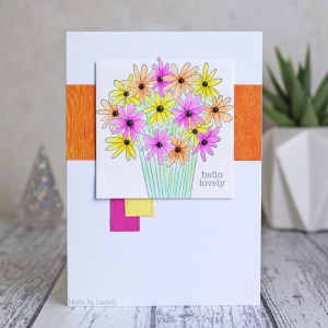 I used the fabulous Flower Cluster Sketch stamp by Hero Arts from the 2005 collection. The Color Throwdown colours (yellow, orange, hot pink and green) are much brighter than my preferred, more muted palette, but that’s why I love this challenge so much – it often pushes me beyond my colour wheel comfort zone!
