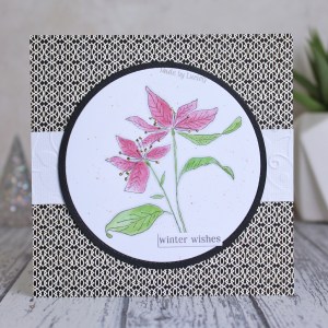 I’m still playing catch up with my cards and here’s the card for Christmas in July Day 5 (Day 21 of the colouring challenge). I inked up the fabulous Christmas Color stamp from Penny Black and coloured it with my Twinkling H2Os. I seriously can’t remember the last time I used this stamp!