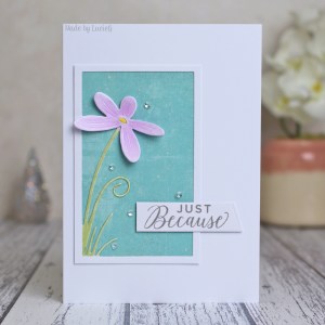 I’m playing along with the current sketch challenge at CAS Colours and Sketches. I decided to use a new-to-me die, the beautiful Floral Stem Collage from Poppystamps. As the flower bends into the right of the frame, I flipped the sketch and lined the die cut on the left side of my card!