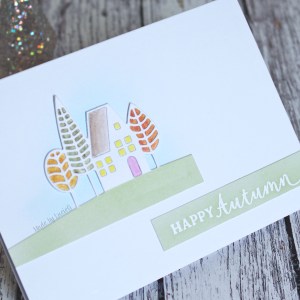 I didn’t do too much inlaid die cutting this time – just the cottage. For the trees, I coloured some card using my Daniel Smith Watercolours and then stuck my die cut on top before adhering the image to the card base.