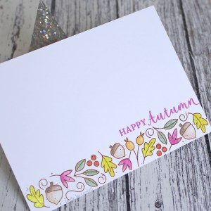 Back to today’s card. I actually love making one-layer cards and this was so much fun to make! I coloured it using my Twinkling H2O paints. I decided to use a Hero Arts sentiment but wanted to use an ink that was the same colour as some of the leaves. I was so chuffed to discover a perfect match (Cosmic Berry) – love my Altenew inks. I seem to have a colour for every occasion!