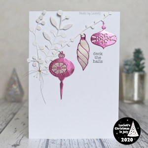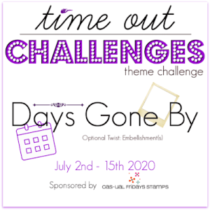 Today I’m playing along with the current challenge over at Time Out Challenges where the theme is ‘days gone by’. I immediately thought of my retro ornament dies by Simply Graphic. Aren’t they fabulous. They bring back so many memories! I the branches dies are also by Simply Graphic. The sentiment is from a very versatile sentiment set by Mama Elephant.