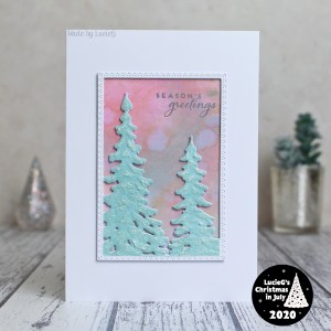 I bought this beautiful Memory Box Pine Tree Frame die last year but didn’t have time to use it, so I thought it would be perfect for this challenge.