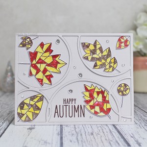 I actually made a tree scene card using these colours yesterday. However, when I went to upload it, I felt that it wasn’t appropriate given the terrible fires engulfing the forests in the western USA. So, today I had a bit of free time and re-did my card using the beautiful Simon Says Stamp Fractile Leaves set plus a background die from The Stamp Market. The sentiment is by Hero Arts.