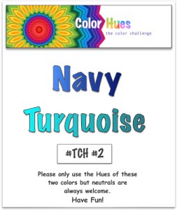 Today I’m playing along with a new colour challenge, Color Hues! The palette is navy and turquoise.