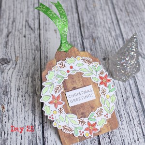 The sponsor for Day 25 was Pretty Prink Posh. I love this brand so much and I couldn’t wait to use the winter wreath stamp set for my tag using the inspiration provided by Jeanne.