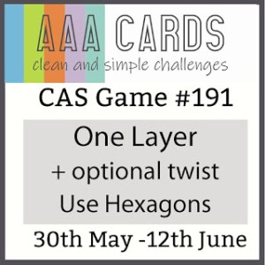 It’s time for the a new challenge at AAA Cards!  This fortnight we’d like you to create a one-layer CAS card; our optional twist is ‘hexagons’.
