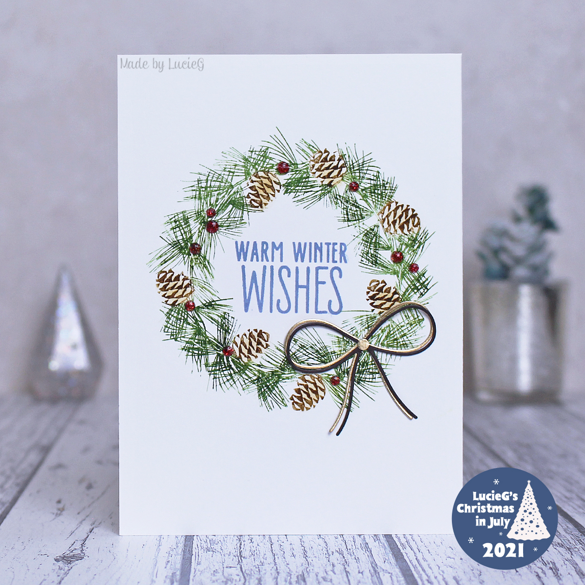 Such a gorgeous wreath and wonderful CAS card! Love the delicate design of the pinecones and pine needles! Thank you so much for playing along with 52CCT. Rosi x