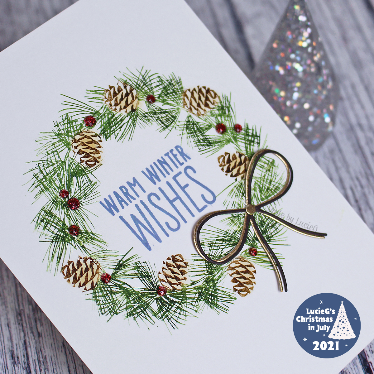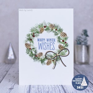Welcome to Day 20 of Christmas in July 2021! Today I’m playing along with the Christmas Card Throwdown challenge which has a theme of ‘pinecones’ and the Double Trouble Papercrafting challenge where the theme is Christmas in July with an optional Twist to add a bow.