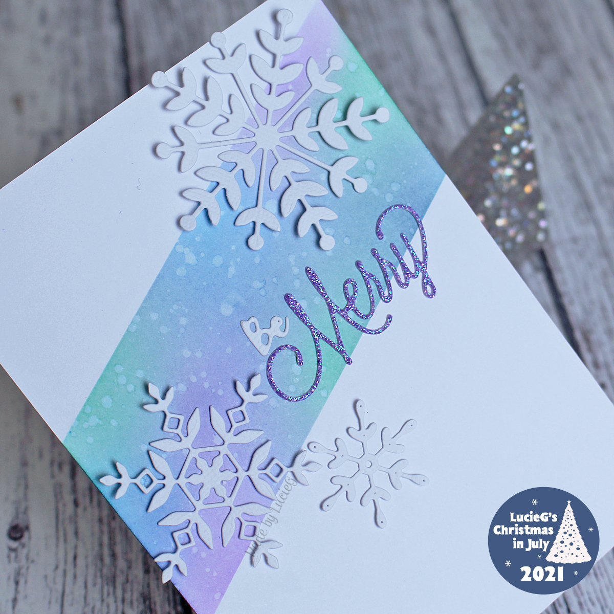 The larger snowflake dies are by Simon Says Stamp and I chose a smaller snowflake from a My Favorite Things set. The sentiment is a combination of dies from Hunkydory Moonstone and Penny Black.