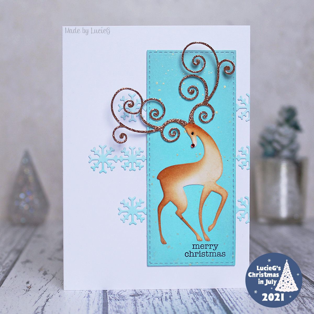 2. Wow! What a stunning image, Lucie! Your coloring is flawless…and these antlers are definitely making a statement. I love how you used the snowflakes for the strips. Thank you for playing in my sketch challenge at The Paper Players this week!