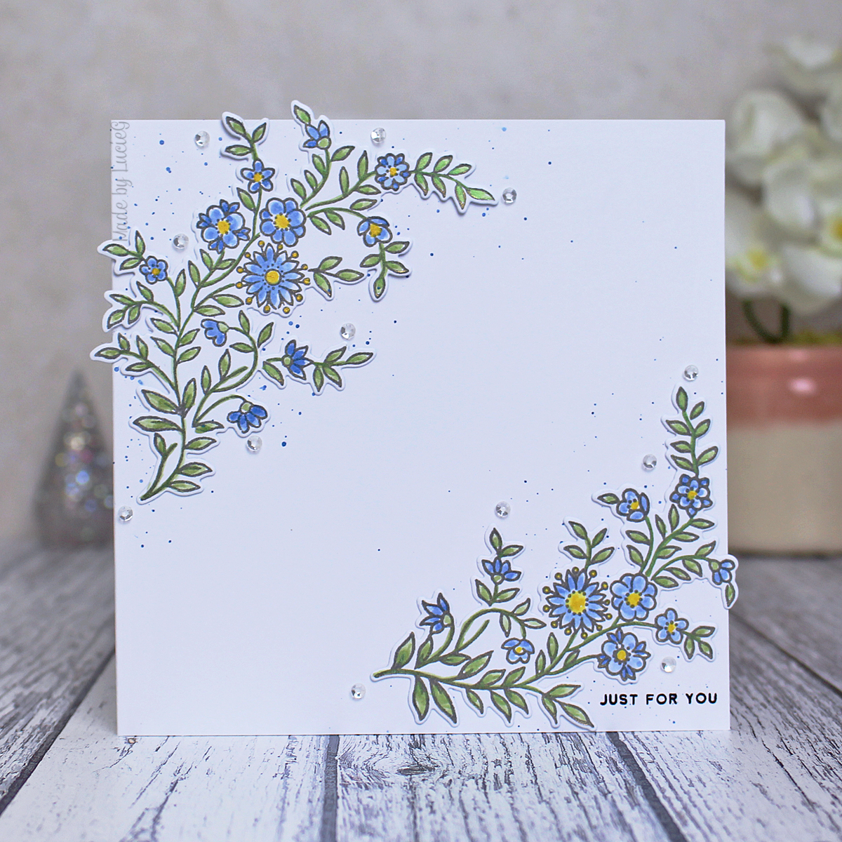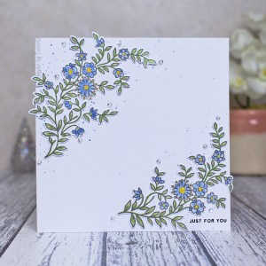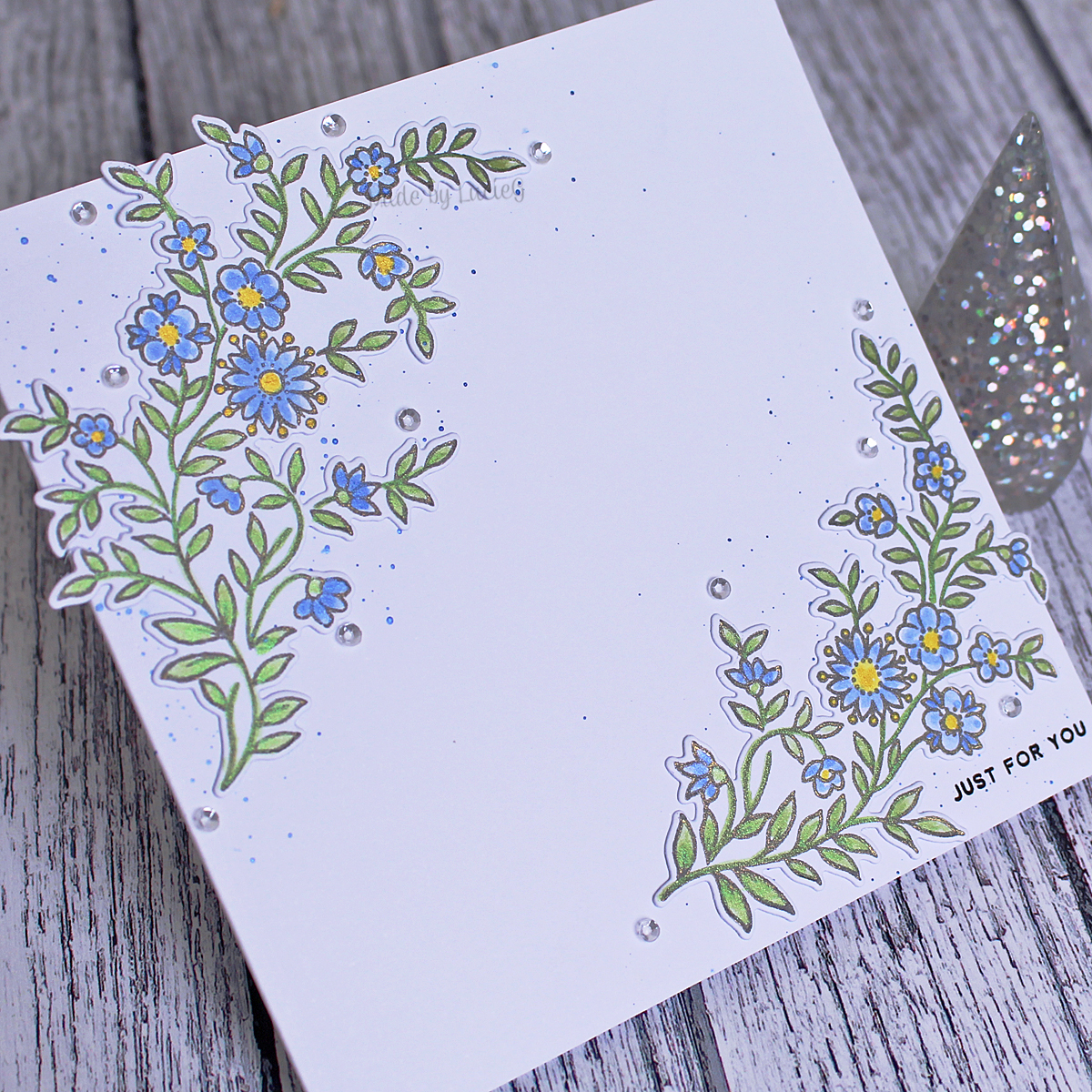 The Altenew Flower Vine stamp and die set have been sitting on my table since I made a card for the Altenew Ultimate Challenge Blog hop a few weeks ago. It’s such a pretty set, but like so many stamp sets, I’ve rarely used it since I bought it in early 2019. I thought it would be perfect for the sketch challenge. I coloured it with my beloved Twinkling H2O paints and added some blue splatters and baby sequins too.