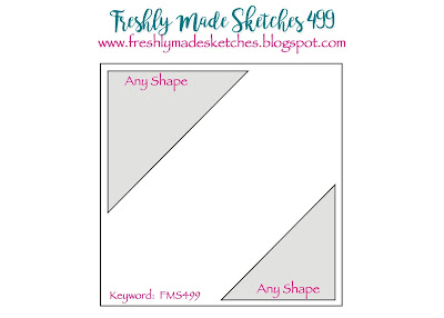Today I’m playing along with the sketch challenge at Freshly Made Sketches. This is very similar to the card I made for the Two Quarters challenge at AAA Cards a few weeks ago, although one of the shaded areas is definitely smaller than the other! Plus I don’t have to get my ruler and calculator out for this one!