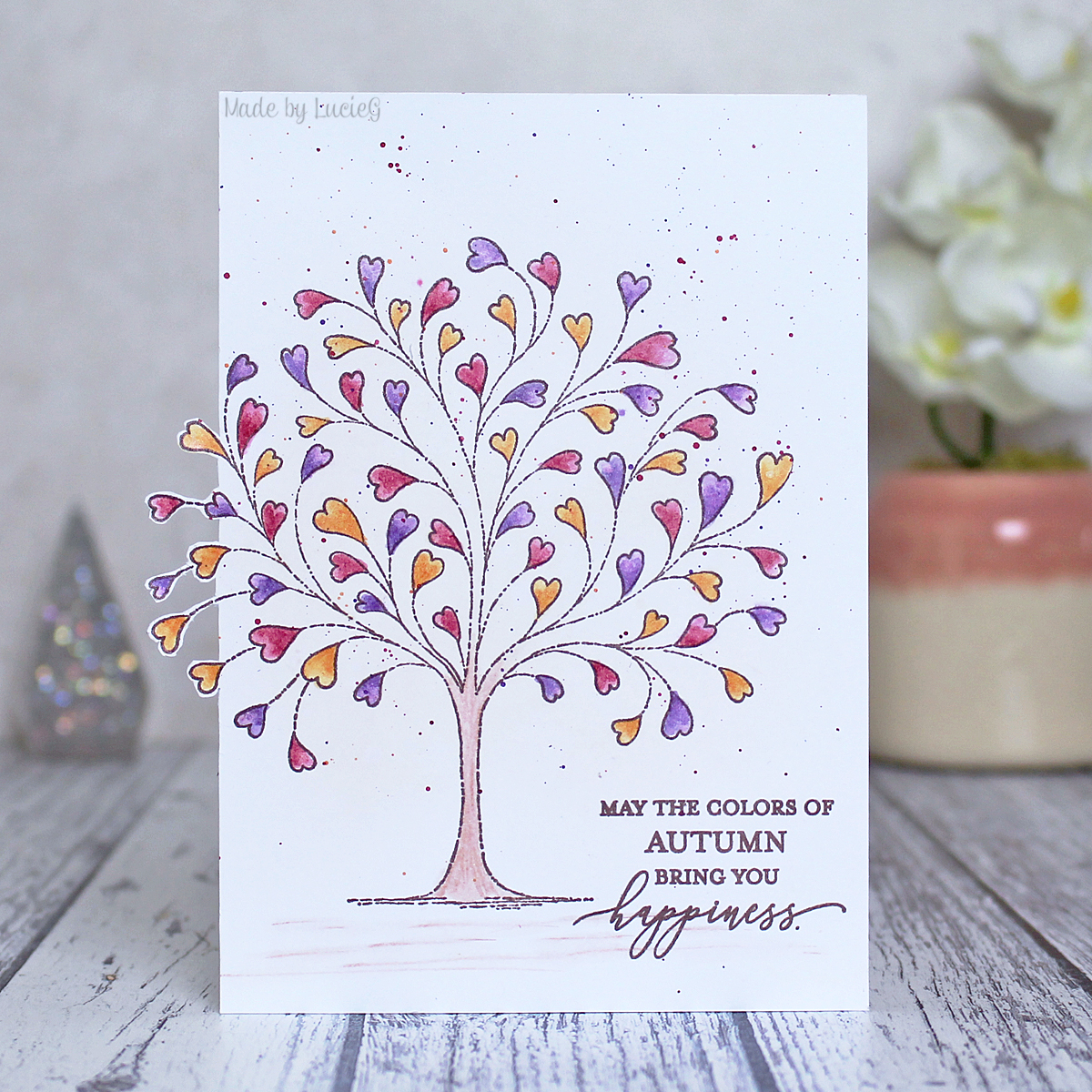 For my take I used very old and very new products by Penny Black. The Tree-heart stamp (40-505) is from 2012 – I love that it hasn’t been retired! It’s always been one of my favourite trees to colour! I paired it with a sentiment from the Autumn is Calling stamp set (30-863) which has only just been released!