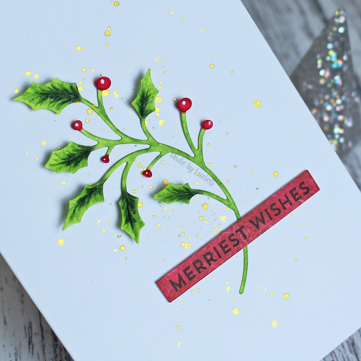 Just beautiful Lucie! I’ve never coloured my diecuts this way but you’ve encouraged me to have a go – your holly stem is so vibrant! Love the gold speckles too. Thanks for sharing with us over at CAS Colours & Sketches this week!