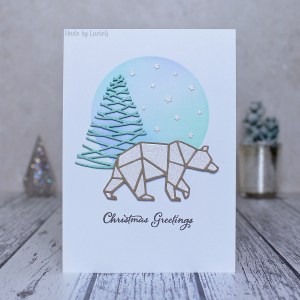 To start with, I chose the sketch from Day 3. This card uses an older polar bear die and a fun tree die from Simply Graphic. I added a Penny Black sentiment because I don’t have any Simply Graphic stamps.