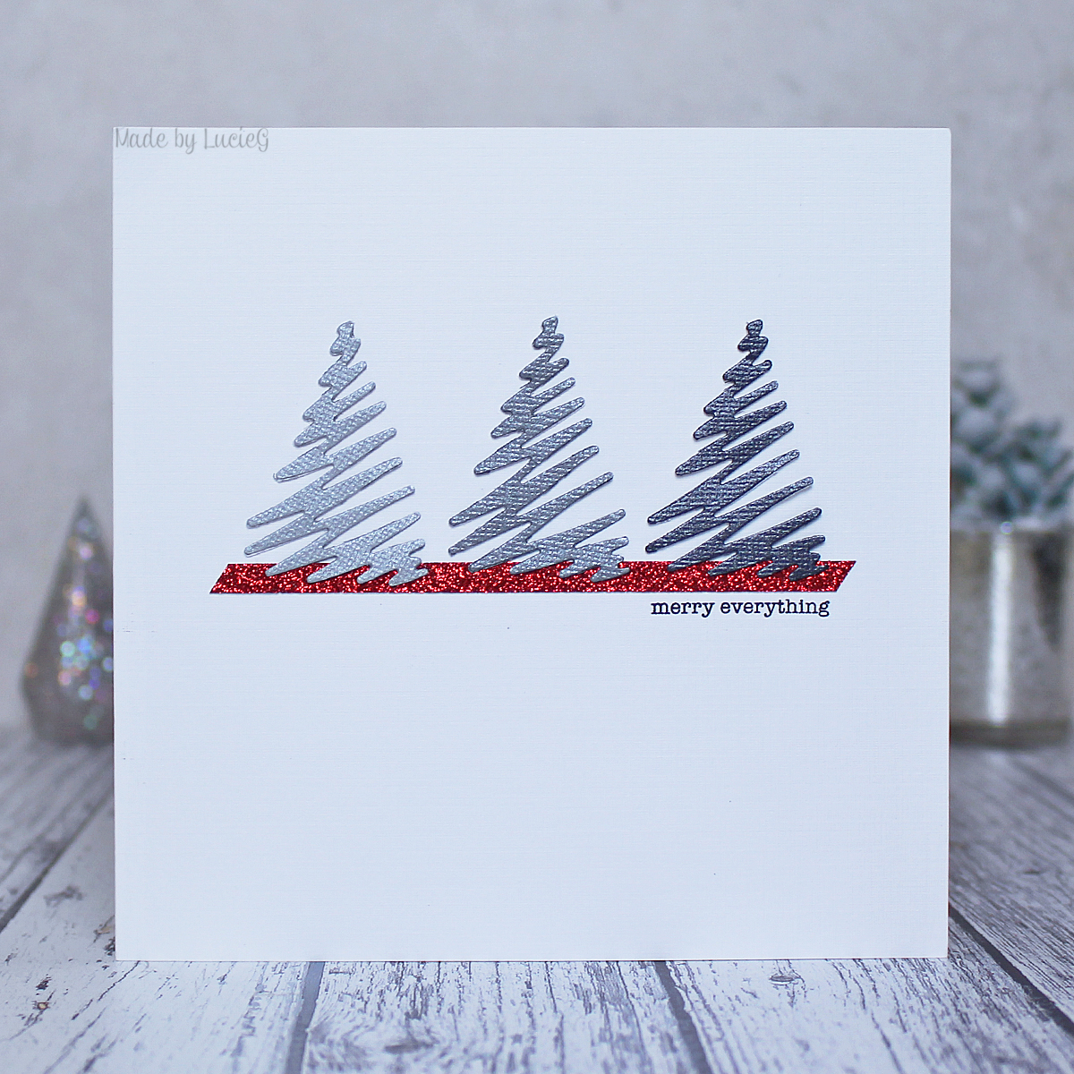 It was the first colour combo challenge – light grey, dark grey, red, black and white. I used my favourite SG Christmas tree and Bazzill Bling cardstock plus a little bit of glitter cardstock. The sentiment is from Mama Elephant as I don’t have any Simply Graphic sentiments.