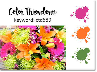 Today I’m using Penny Black products to play along in the Color Throwdown challenge which has a virbant palette of pink, orange and green.