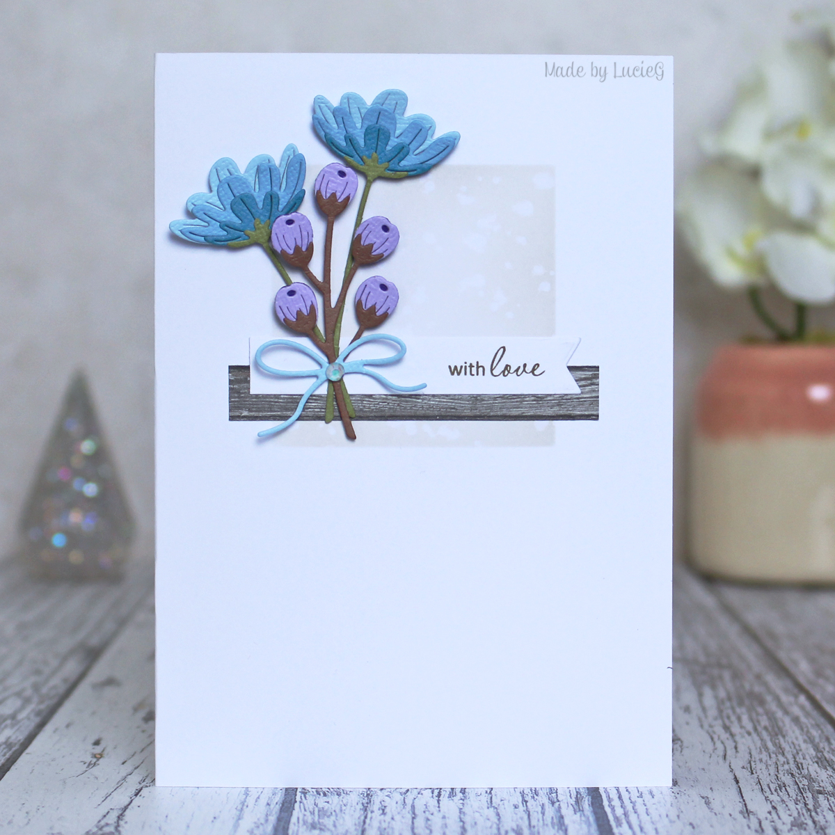 I added a strip of patterned paper and a Clearly Besotted sentiment to finish off my card.