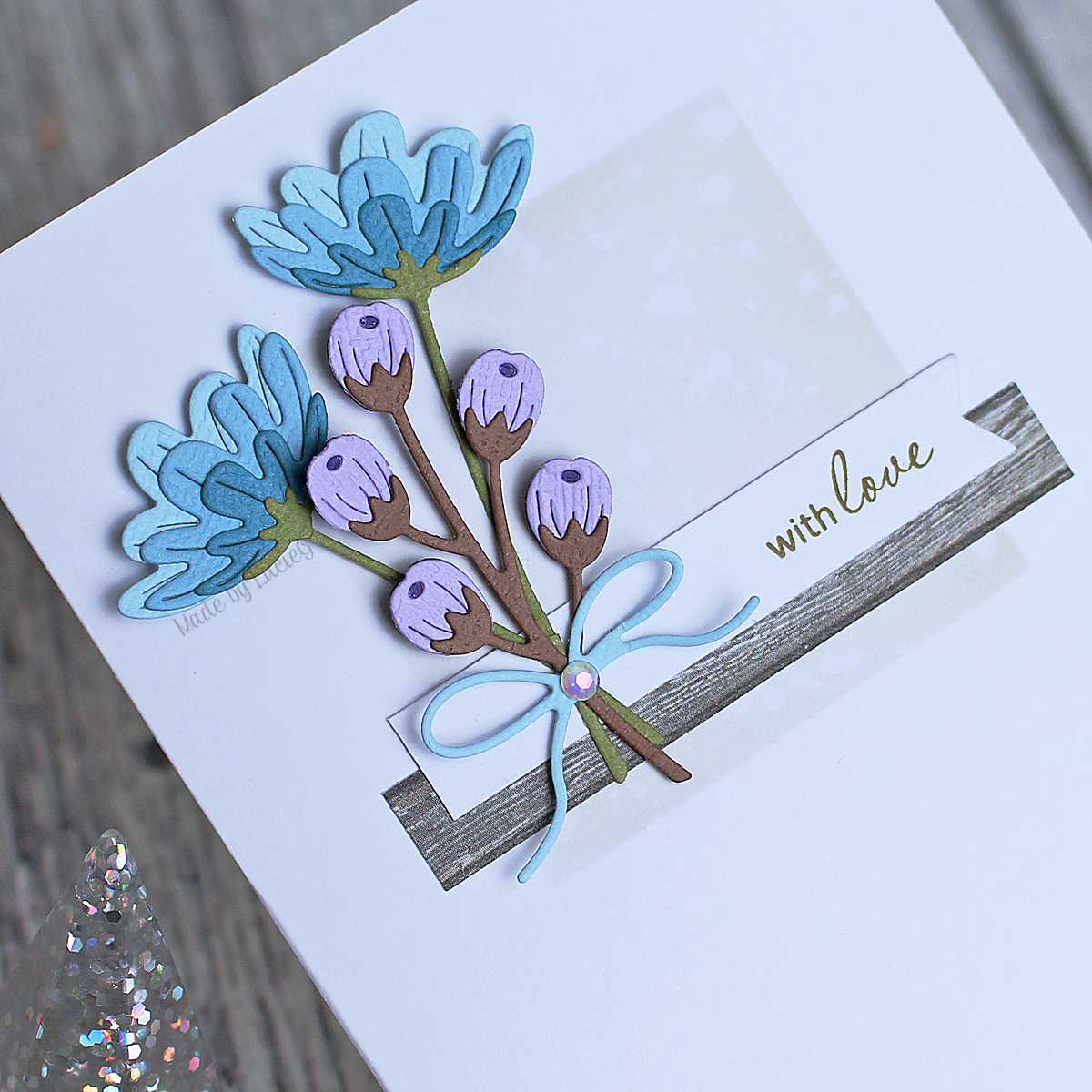 Of course, this sketch had me reaching for my Spellbinders’ Be Bold Blooms die set again. I love how versatile it is! I cut the images from Bazzill Basics cardstock and adhered them on top of my ink-blended square on my card base. A Simply Graphic bow was added to bring all the stems together.