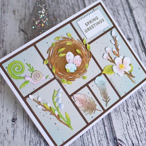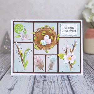I’ve been wanting to use the full Curio Spring Findings die set from The Greetery for a while and this challenge was the perfect excuse, especially as the challenge graphic reminds me of the Crocus Mother’s Day card I made with The Greetery dies!