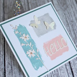 I used background stamps from Flora & Fauna and Simon Says Stamps together with the Hollyhock Stem and Intricate Mini Butterflies dies by Memory Box and a sentiment from Poppystamps.